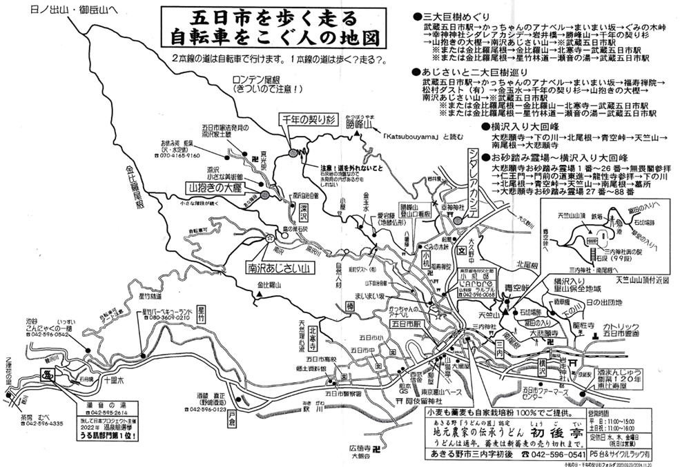 | 「初後亭」さんは蕎麦・うどんの蕎麦・小麦は自家栽培とのことです、また大悲願寺の幼稚園に通った関係でお寺の88箇所地蔵様の | ||