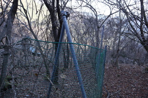 モノレールとネットフェンスの交差点 ここをネットに沿って登ります |