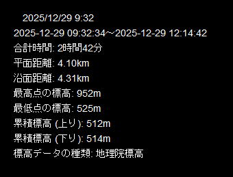 | 「山旅ロガー」データ(時間計、最高・最低標高には多少誤差があります) | ||