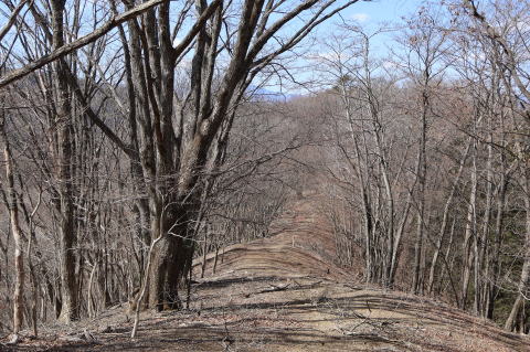 | 小河内峠から月夜見山へ続く道 | 11:04 巻き道を歩かずに「水窪山」を 通過しました、山名表示表は有りません |