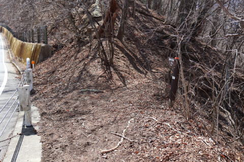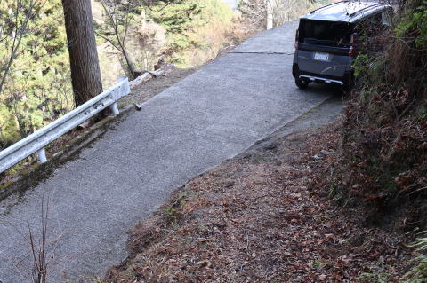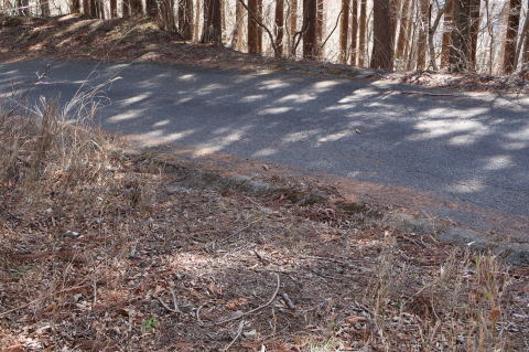 | ここからまた山道ですが、風張峠駐車場から 倉掛尾根に入るので道路を歩くことにしました |