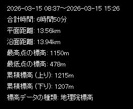 | 「山旅ロガー」データ(時間計、最高・最低標高には多少誤差があります) | ||